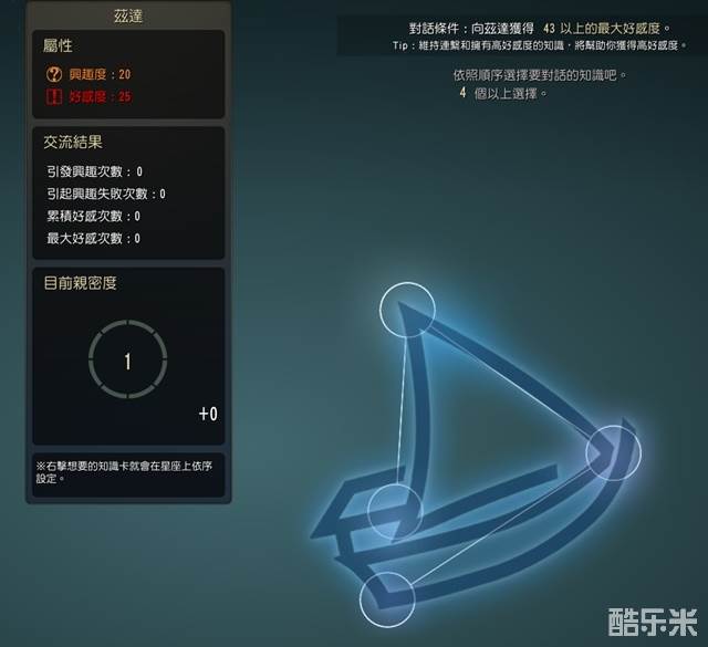 NPC的星座可透知识视窗(H),以及对话交流时所出现的背景图像查看。