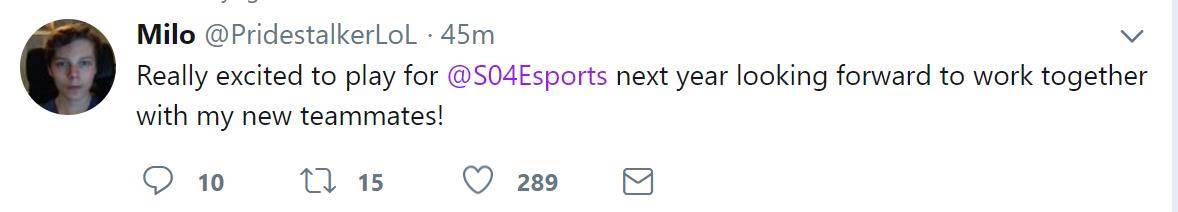 打野Pridestalker:我很激动能在明年和沙尔克04一起奋斗。我很期待和我的新队友并肩作战。