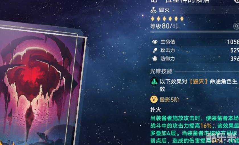 叠1的专属光锥,对比满叠影的星神陨落伤害有大概13%的优势。尽管如此,星神陨落依然是平替首选。五星光锥里无可取代的东西属于同样能用的水平。
