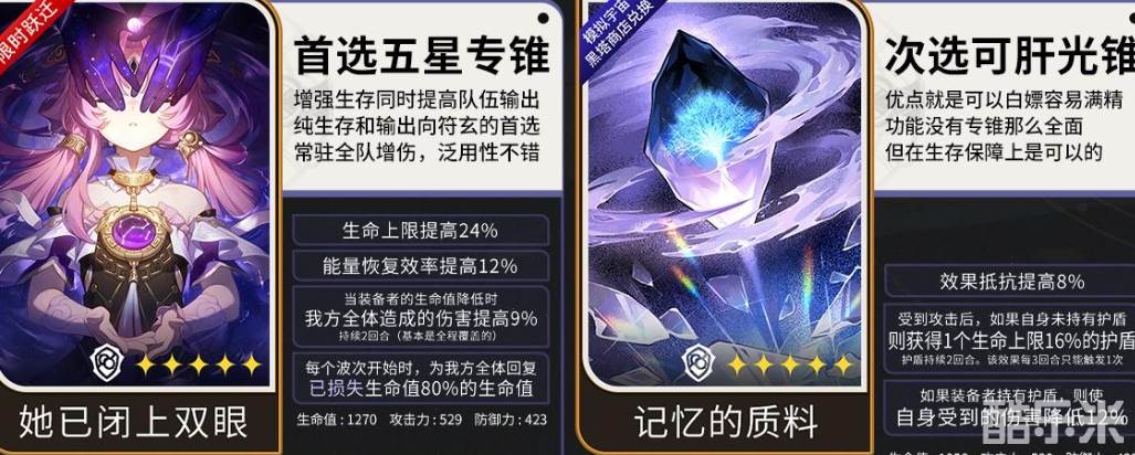首选专属光锥她已闭上双眼,平替首选光锥为黑塔商店的记忆的质料。相比专属光锥,记忆质料也有它的优势,就是对于符玄自身的保命能力更强。