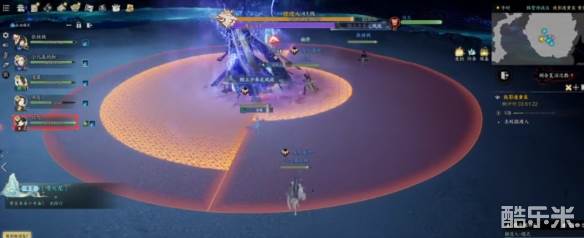 随机突进远处的一名玩家,接着释放两段半圆AOE,远程退到红圈外继续输出,近战两段位移躲避。
