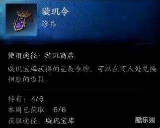 璇玑宝库(每周修炼)获得的代币,可在璇玑商店兑换数值养成道具。