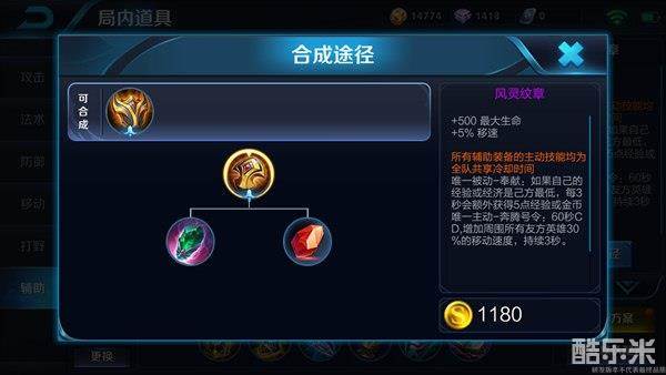 辅助装备必出的基础装,可增加少许移速效果,被动特效与辅助单位的定位十分契合,可以在游戏前期让辅助嬴政不至于在经济或经验方面与队友拉开太大差距,同时也解决了辅助与射手分摊经验和经济,导致游戏前期射手发育较慢尴尬的问题。