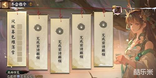 云华城的朋友们为庆祝佳节设计的对诗玩法,出题人会给出符合冬霄节氛围的上句诗,诚邀阴阳师题写出下句诗。