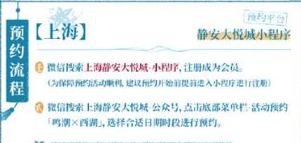 2、上海:前往静安大悦城小程序,搜索鸣潮西湖活动,选择合适时间进行预约即可;