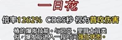 1、普攻也为强化技能一日花:进入强化状态可以得到增益buff。