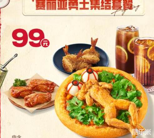 1、赛丽亚勇士集结套餐售价99元,内含主食1份、小食2份、饮料2份;