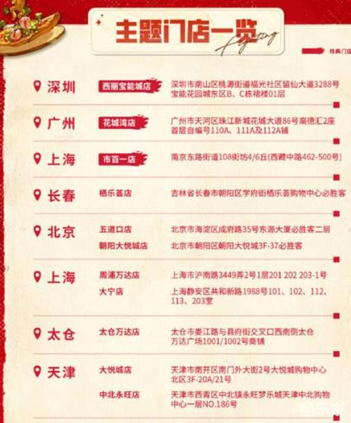 PS:由于主题门店较多,详细地址如下所示: