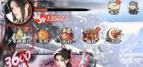 1、进入主界面在左上角头像的下方点击少年踏歌行。
