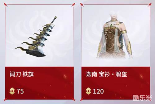 4、阔刀铁旗:75积分;迦南宝衫·碧玺:120积分;