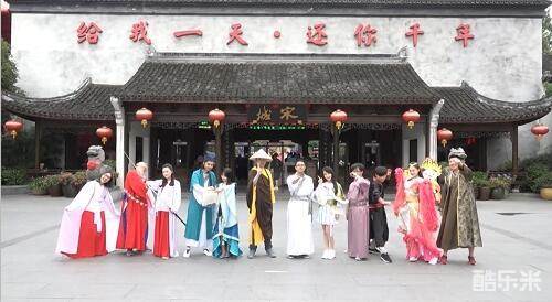 当天宋城园区有穿越季的活动,所有进入景区的游客全部穿着古装,仿佛集体穿越回三国,置身于古代市集,氛围十分契合。