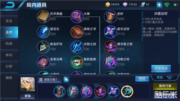 出装推荐:冷静之靴、痛苦面具、回响之杖、博学者之怒、虚无法杖、冰霜法杖