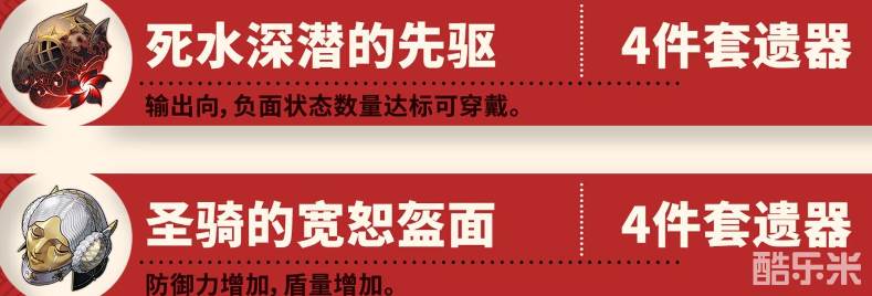 二、遗器外圈推荐4死水或者是4圣骑,内圈推荐龙骨或者是萨尔索图,优先堆到4000防御力;