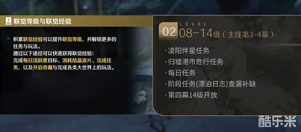 这部分其实没什么好说的,跟随主线指引,一路做主线即可,做完主线第三幕保送联觉等级8级,甚至还会多一点。不用着急做其他任务和解密,跟做主线即可。