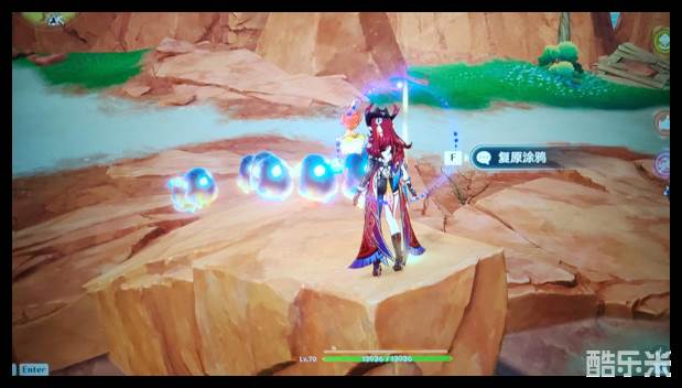 旁边有另外三个幻写灵,附身蓝龙,左键对准岩石上的图案,E键对准地上九宫格,即可完成游戏,可以获得一个精致宝箱