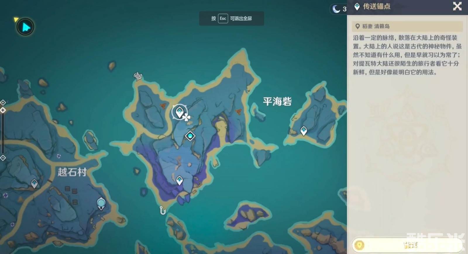 1、原神海染套圣遗物的副本在稻妻地区的清籁岛传送点南边,具体位置如下图。