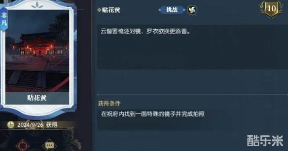 贴花黄是一个非凡品质的挑战说英雄卡,很多小伙伴想知道说英雄卡贴花黄怎么获得,进入梁祝惊梦副本(314.457),在镜子前面对着镜子按F拍照即可获得说英雄卡,接下来酷乐米小编给大家带来了详细的《逆水寒手游》说英雄卡贴花黄获得方法!