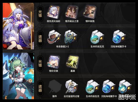 若无藿藿,因为队伍对充能要求较高,所以可以携带等价交换的高速丰饶角色为次优解。