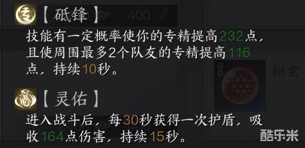 1、伤害【砥锋】,生存效果选【灵佑】。