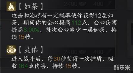 2、想要爆发救场型的治疗选【如荼】生存效果选【灵佑】。