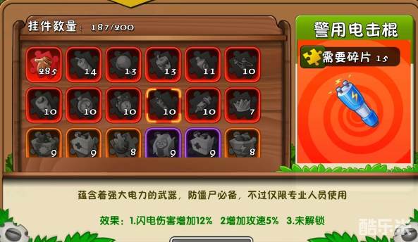 植物大战僵尸2警用电击棍给谁,建议给猫尾草,仙人掌,蓝莓,山竹等植物佩戴,或者其他自带闪电特性的植物,下面和酷乐米小编一起来看看吧