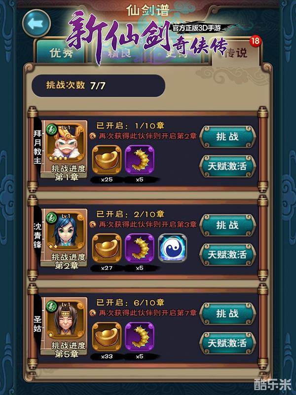 另外,在副本及各种活动中获得的召唤券也要利用上,召唤出来的角色卡牌,用不到的可以分解掉给队员提升技能等级,还能开启对应角色的“仙剑谱”。每次挑战“仙剑谱”成功可以获得最少20元宝的奖励(上限还不知道,小编目前最多的一次是28元宝),而挑战“仙剑谱”是不限制次数的!也就是说,玩家每用完当前挑战次数之后,等CD过了(CD为5分钟/次)又可以重复挑战。所以,想大量获取元宝的仙迷们,千万不要错过了“仙剑谱”这块大蛋糕!