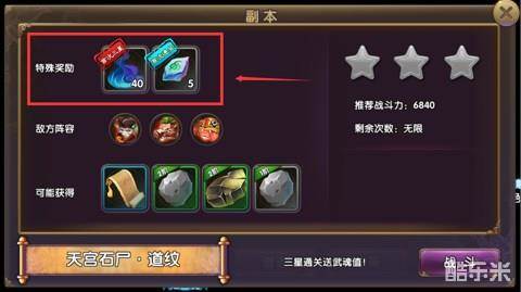 每次副本通关后道友均可获得经验、黄金及道具奖励。首次通关及首次三星通关副本均可获得指定奖励。