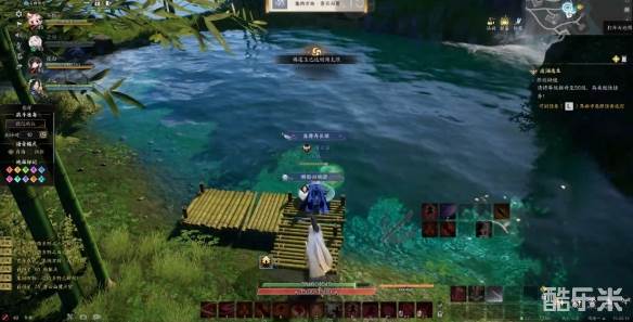 5、朝着池塘飞过去,在木筏上找到灵体。