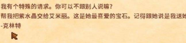2、在获取紫水晶后以克林特的名义,将紫水晶赠送给艾米丽。