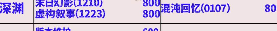 1、末日幻影可获得800、虚构叙事可获得800、混沌回忆可获得800,共计2400星琼。