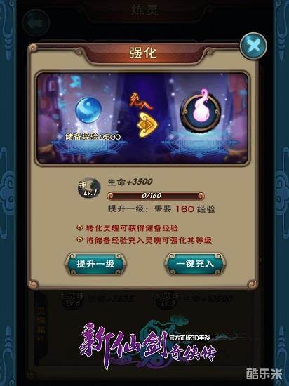 在每天炼灵中获得的经验之灵,是直接可以给其他几种灵魄提升经验值的,灵魄的等级提升后,相对应的属性值也会随之增加。所以有了经验之后,一定要第一时间提升各个灵魄的等级,对于提升战力大有好处。