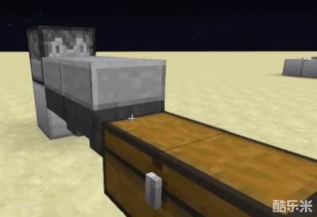 1、在空地上放置两个箱子和两个漏斗,接着在漏斗后面放上一个方块。