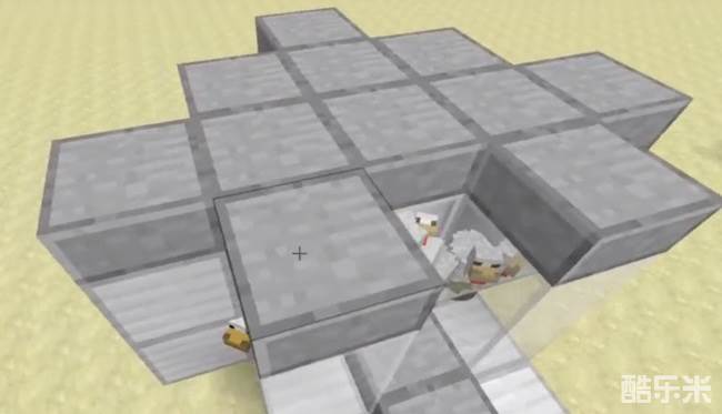 7、在地毯的3个漏斗周围,围上方块和玻璃。