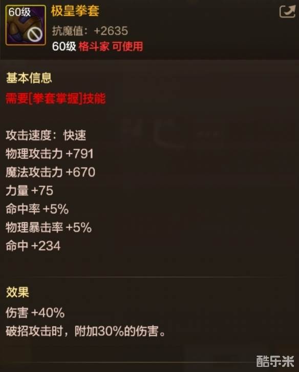 极皇拳套是《地下城与勇士:起源》中的格斗家职业60级史诗拳套,有着破招攻击时增加伤害的效果,下面和酷乐米小编一起来看看吧