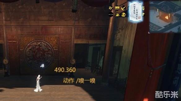 5、彩缕闻香:千月戏院(490.360)戏台上,动作【嗅一嗅】