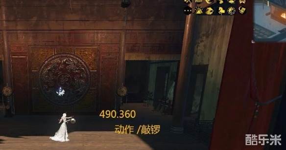 6、锣声戏响:千月戏院(490.360)戏台上,动作【敲锣】