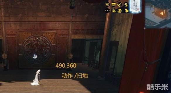 7、净台无尘:千月戏院(490.360)戏台上,动作【扫地】