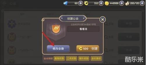 2、接着在创建公会页面,点击左侧的修改会徽;