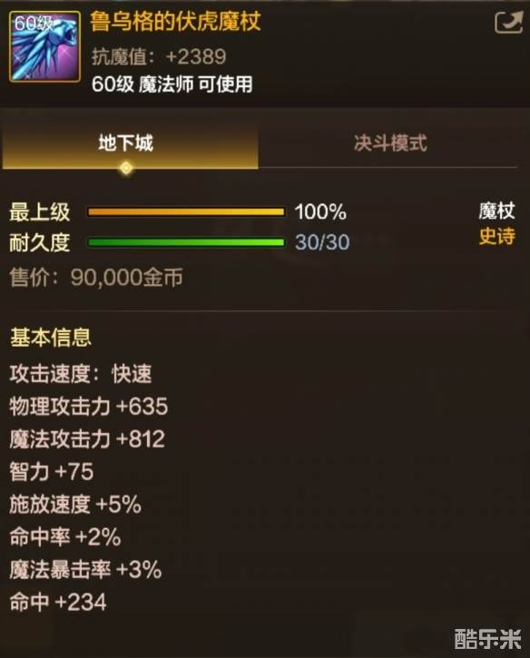 鲁乌格的伏虎魔杖是《地下城与勇士:起源》中的魔法师职业60级史诗魔杖,有着冰属性强化,以及冰墙、极冰盛宴技能等级提升的效果,接下来酷乐米小编给大家带来了详细的《地下城与勇士:起源》鲁乌格的伏虎魔杖属性一览!
