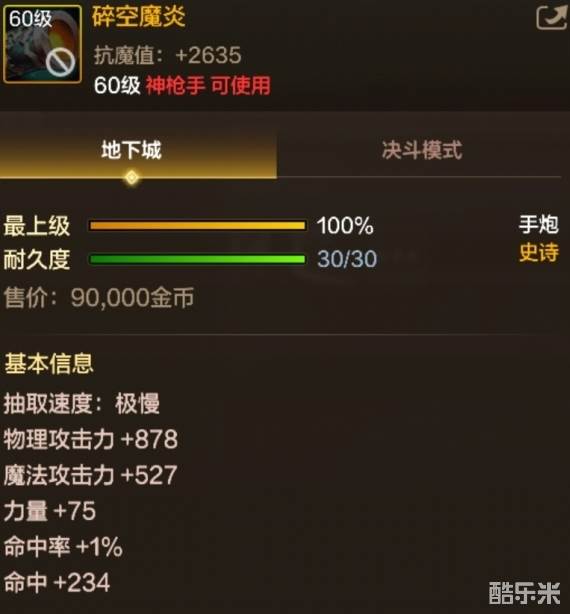 地下城与勇士起源60级史诗手炮碎空魔炎怎么样?下面和酷乐米小编一起来看看吧