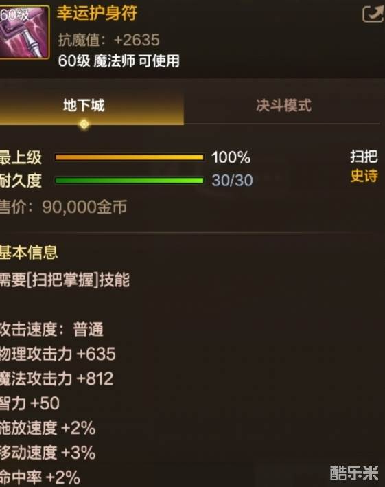 地下城与勇士起源60级史诗扫把幸运护身符是什么?下面和酷乐米小编一起来看看吧