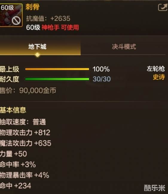 地下城与勇士起源60级史诗左轮枪刺骨怎么样?下面和酷乐米小编一起来看看吧