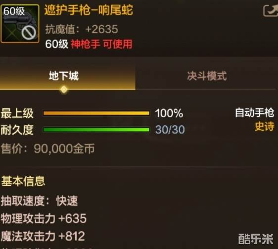 地下城与勇士起源60级史诗武器遮护手枪怎么样?下面和酷乐米小编一起来看看吧