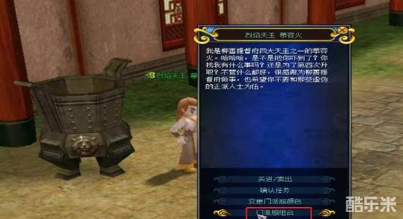 2、购买成功后找到NPC慕容火,与其对话选择门派服组合