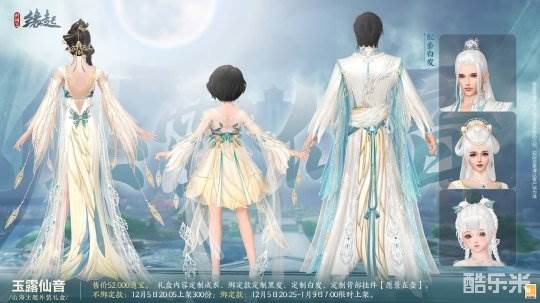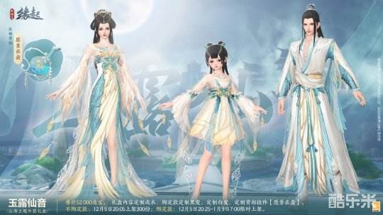 绣罗衣裳照暮春,蹙金孔雀银麒麟。全新山海主题外装礼盒「玉露仙音」身披亮羽翩然落地。成女款长裙曳地,胸前花纹如青鸾展翼,袖口缀金翎飘逸,裙摆燕尾交错,彩绣辉煌,尊贵非凡。成男款长身鹤立,双肩饰以浅白云纹,轻纱环腰,飘忽若神。萝莉款为俏丽短裙,飘带绕肩,清丽灵动,宛若山间精灵腾跃林中。