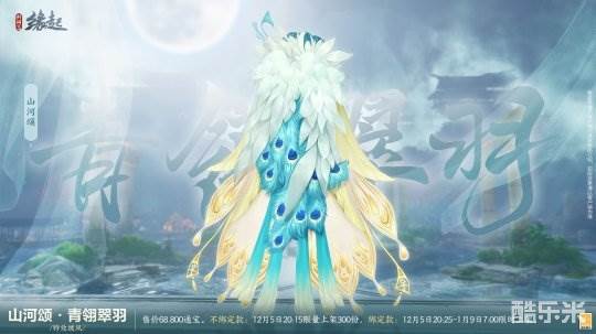 芳情雀艳若翠仙,飞凤玉凰下凡来。特效披风「山河颂·青翎翠羽」以孔雀为灵感,蝶翼为底,轻盈典雅。正中雀翎交叠错落,熠熠生辉,似苍山青翠。外层浅覆白羽,如霜如雪。以百鸟之灵韵,绘锦绣河山。