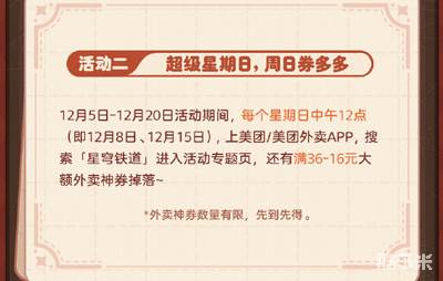 1、在整个联名活动期间,每个周日,也就是12月8日、12月15日;