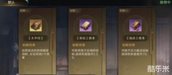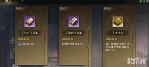 3、韬略库选择:左慈金书太清、兵令和先勇;于吉金书太平经、受势和避险;张角金书太平道法、机动和先机。