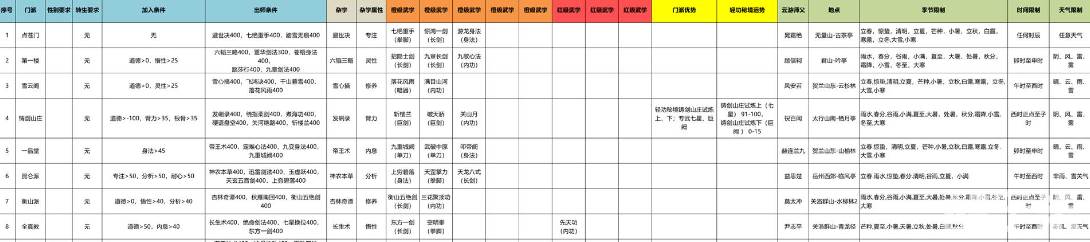 武林秘籍门派相关内容