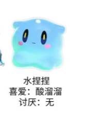 水捏捏喜欢吃酸溜溜的零食,可以增加30点亲密度。(吃不喜欢也不讨厌的零食增加20点亲密度)